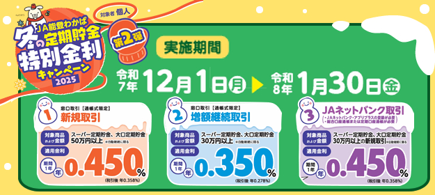 | 2025年11月28日 | 2025冬の特別金利キャンペーン第1弾期間延長&第2弾開始 |
