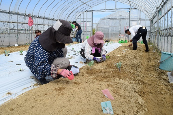 JAグリーンわかばの里の高木外春営農相談員が講師となり大根やカブ、白菜など7種類の種まきや定植をしました。
